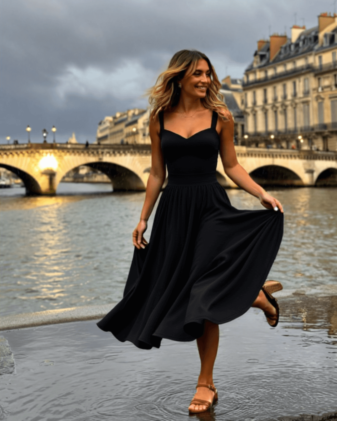 O Vestido Serelune une sofisticação e leveza em um design clássico e versátil. Com modelagem midi e corte godê, ele garante fluidez e movimento à peça, enquanto a cintura marcada valoriza a silhueta de forma sutil e feminina. O decote fechado e as alças largas oferecem elegância discreta, ideal para diversas ocasiões.