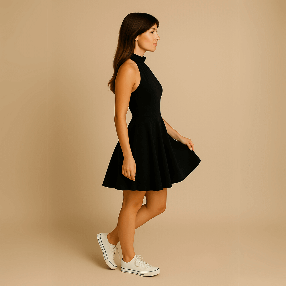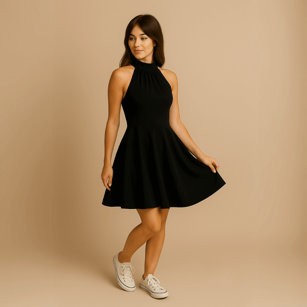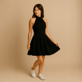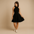Delicado e moderno, o Vestido Curto Miraluna traz um charme atemporal com seu design minimalista e sofisticado. Com modelagem acinturada e saia em corte evasê, valoriza a silhueta de forma elegante e confortável. A gola alta com franzido adiciona um toque de sofisticação, enquanto as cavas amplas destacam os ombros com leveza.